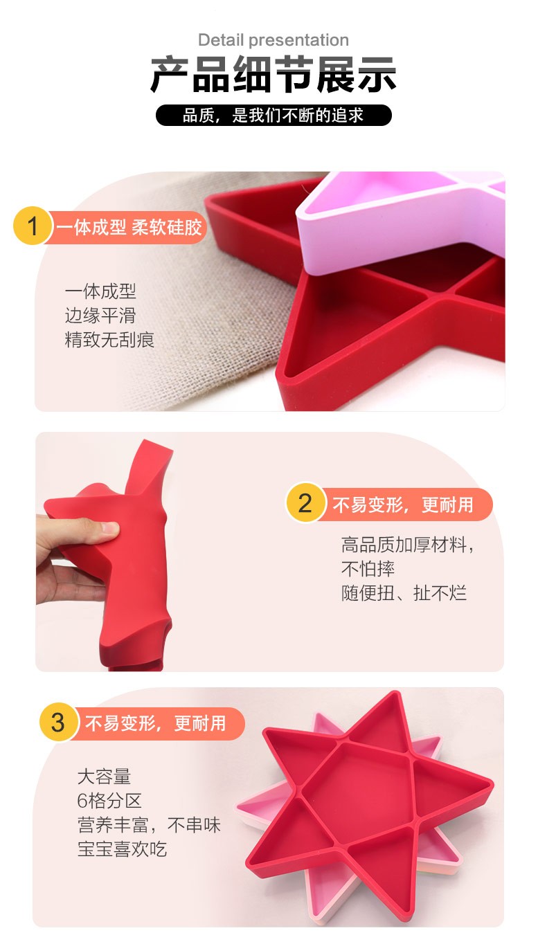 硅胶儿童五角形状餐盘 婴儿辅食碗 厂家直销可定制