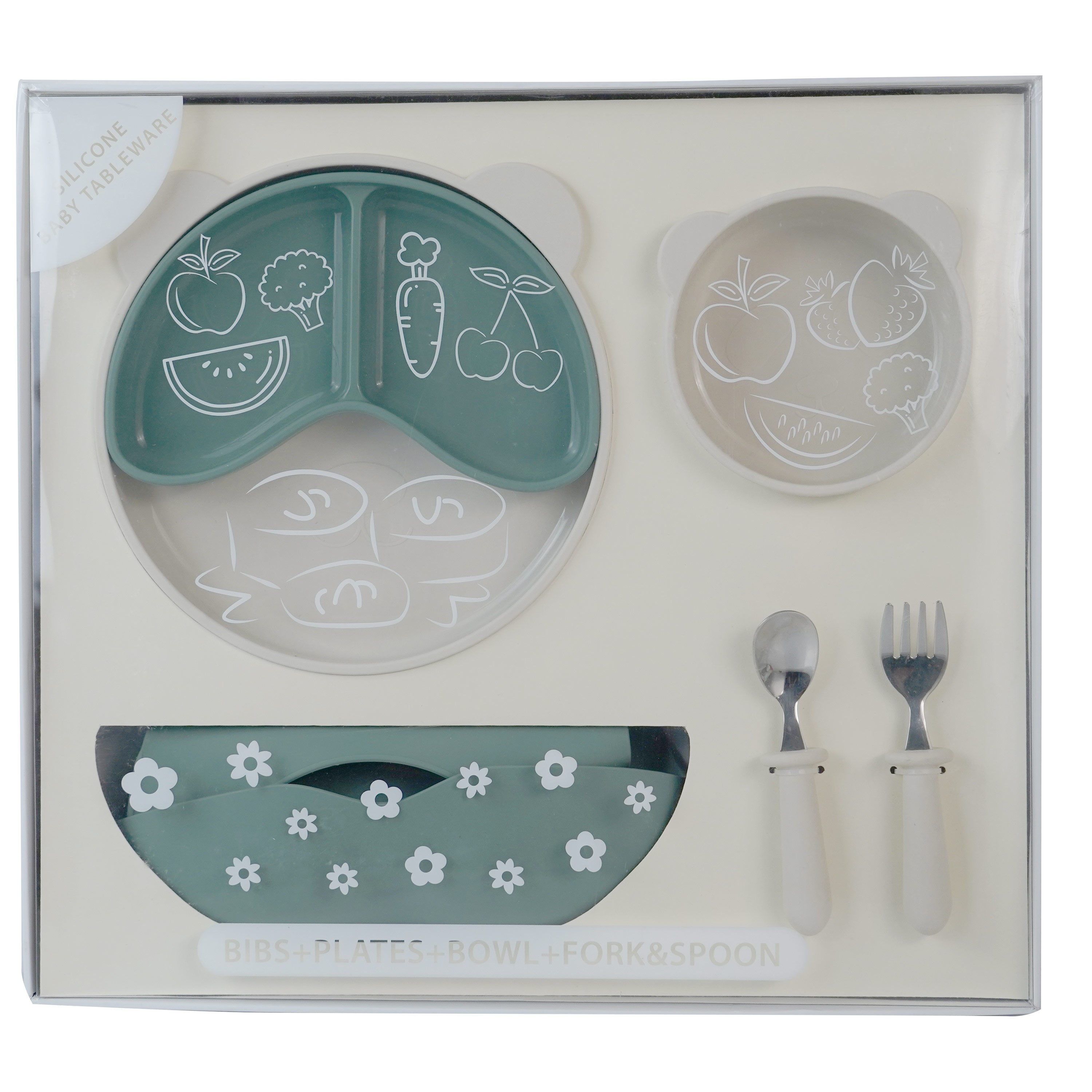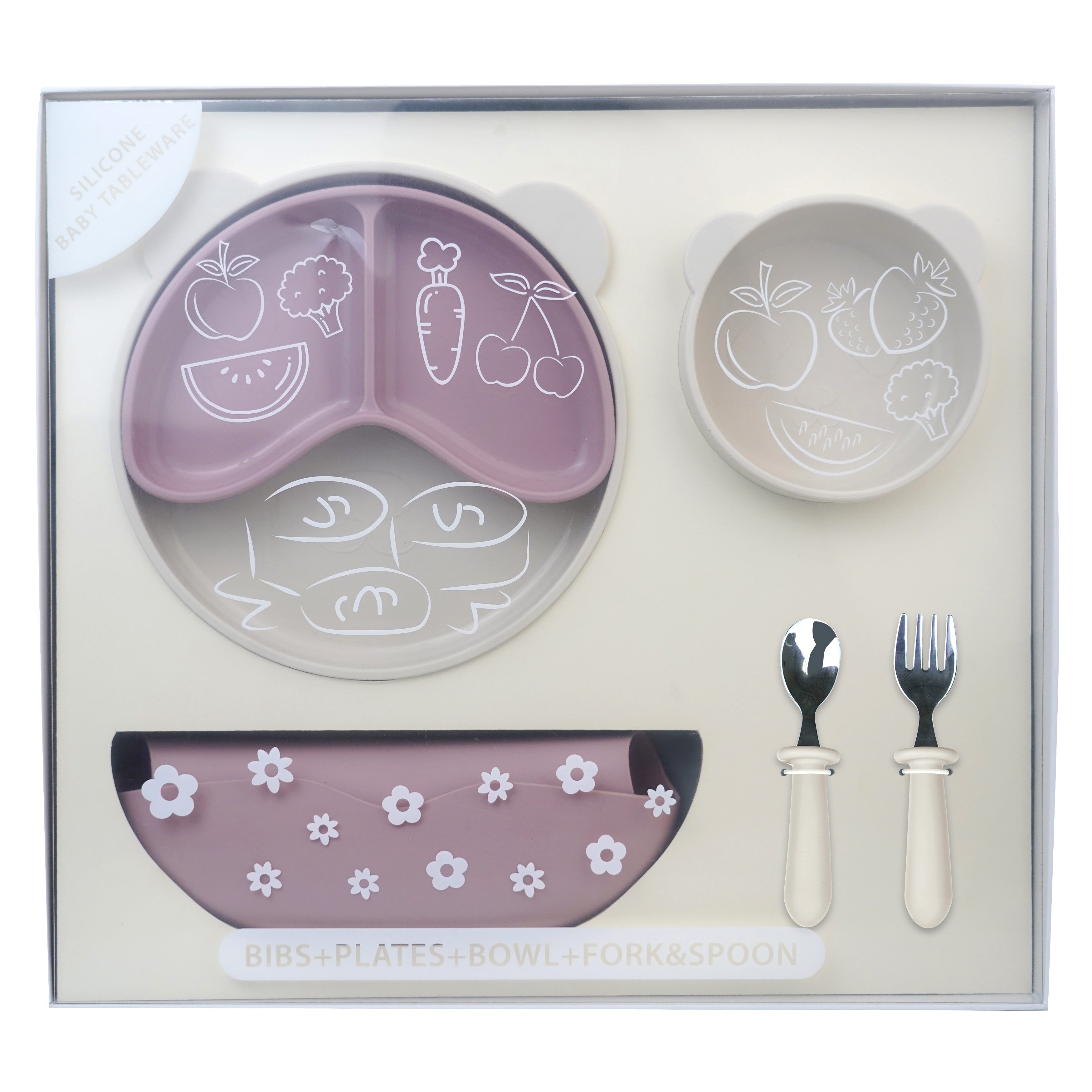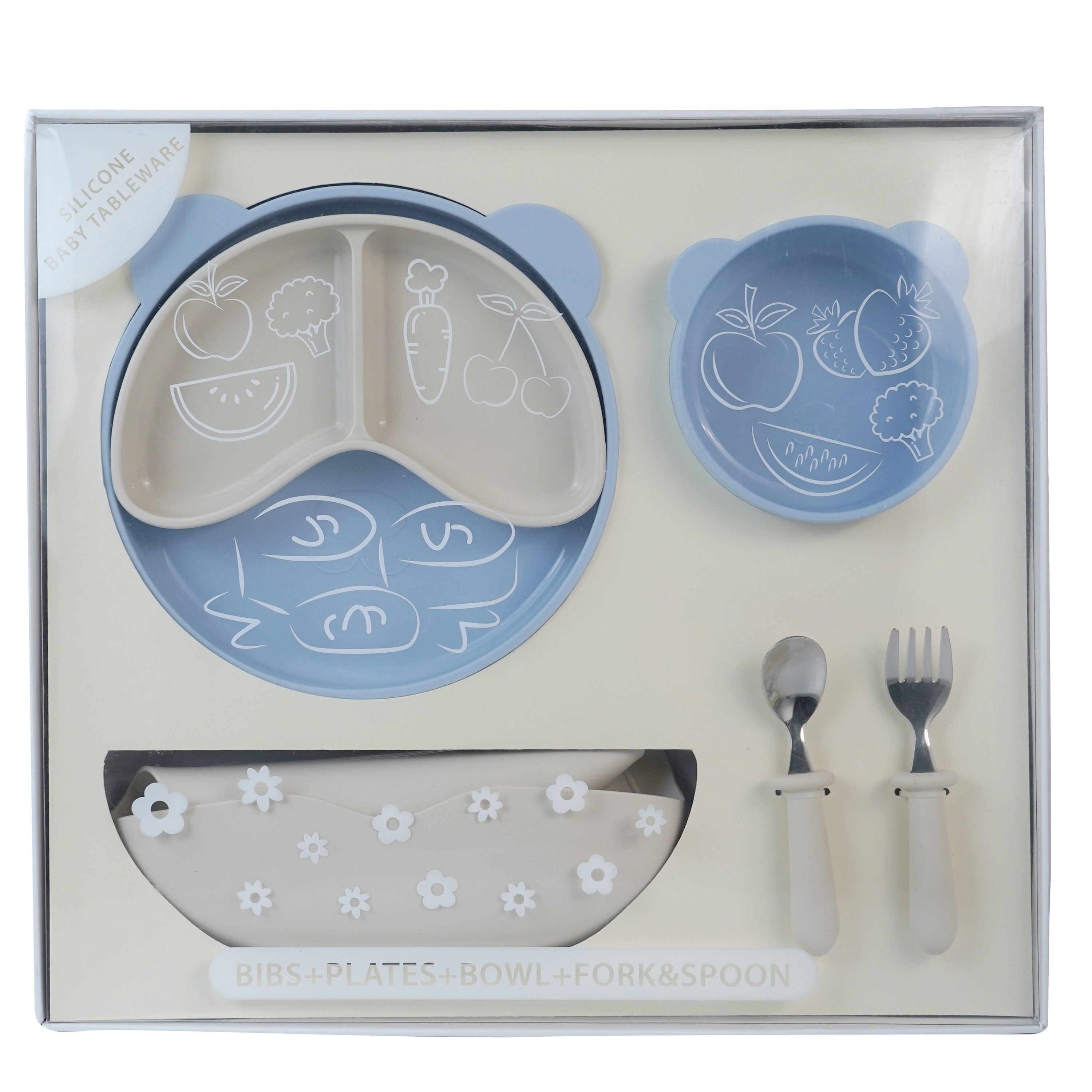 硅胶围兜吸盘碗大勺子可水煮食品级母婴硅胶喂养餐具套装