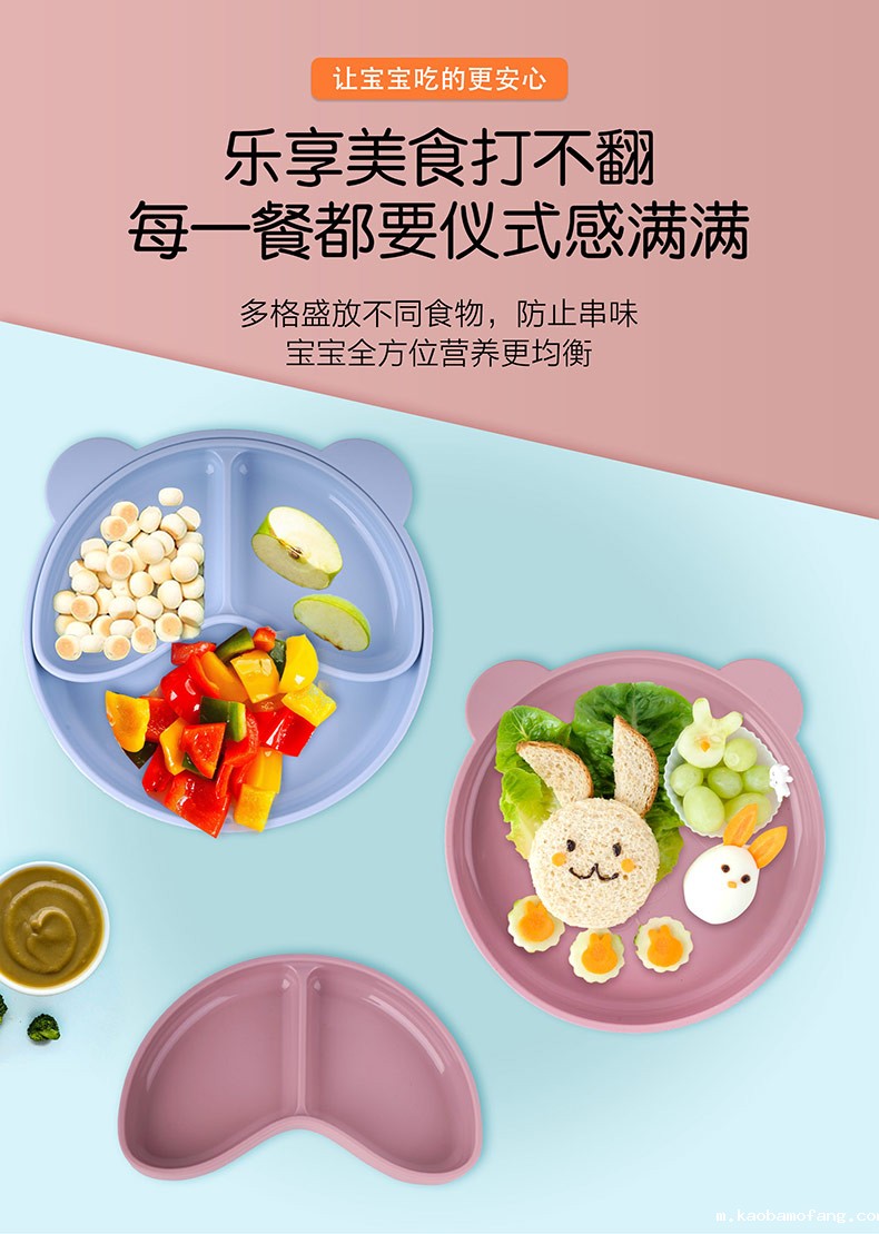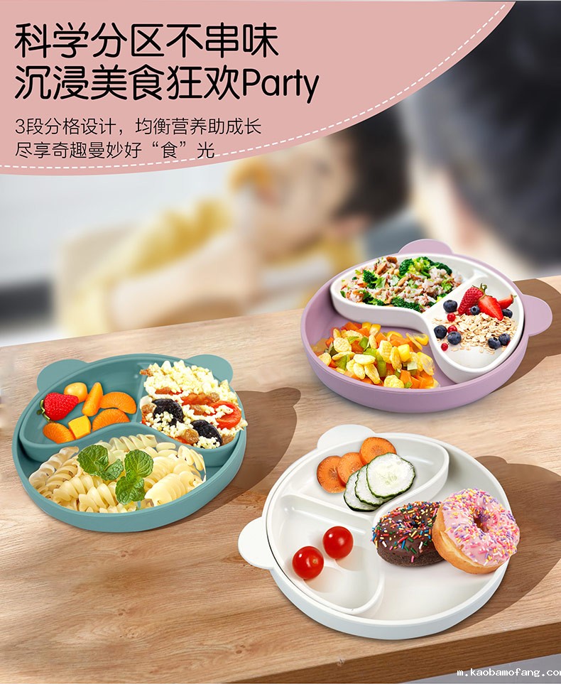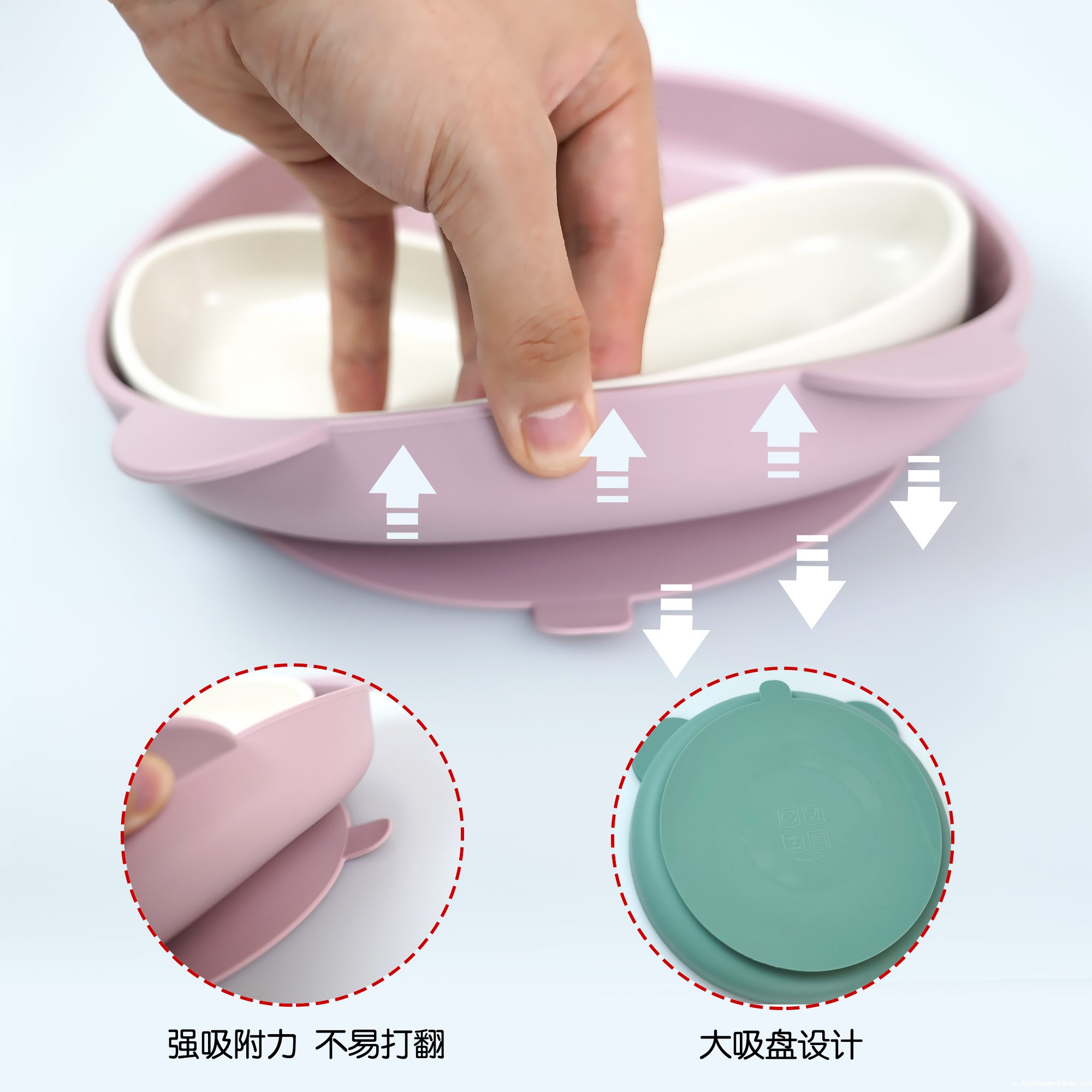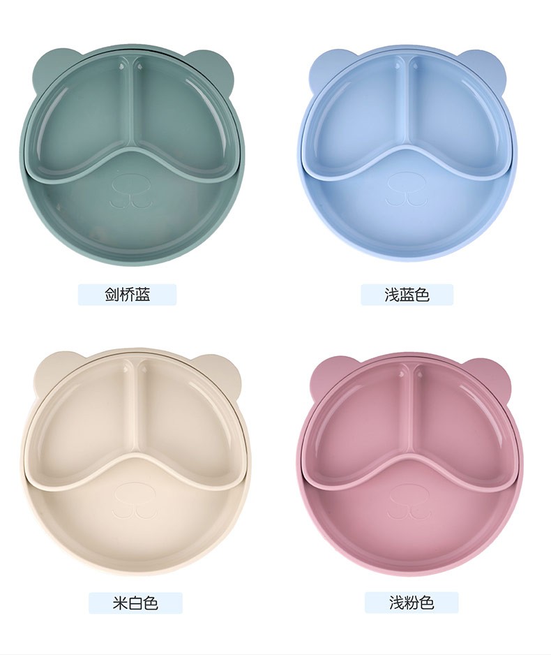 宝宝热销餐盘可拆分食品级硅胶分隔盘辅食吸盘三格儿童硅胶餐盘