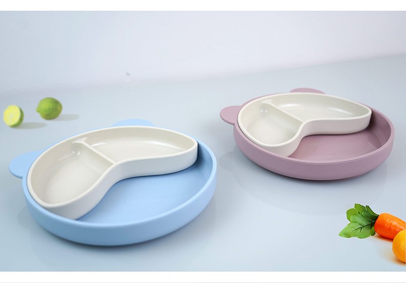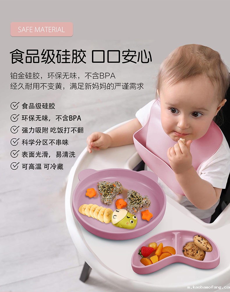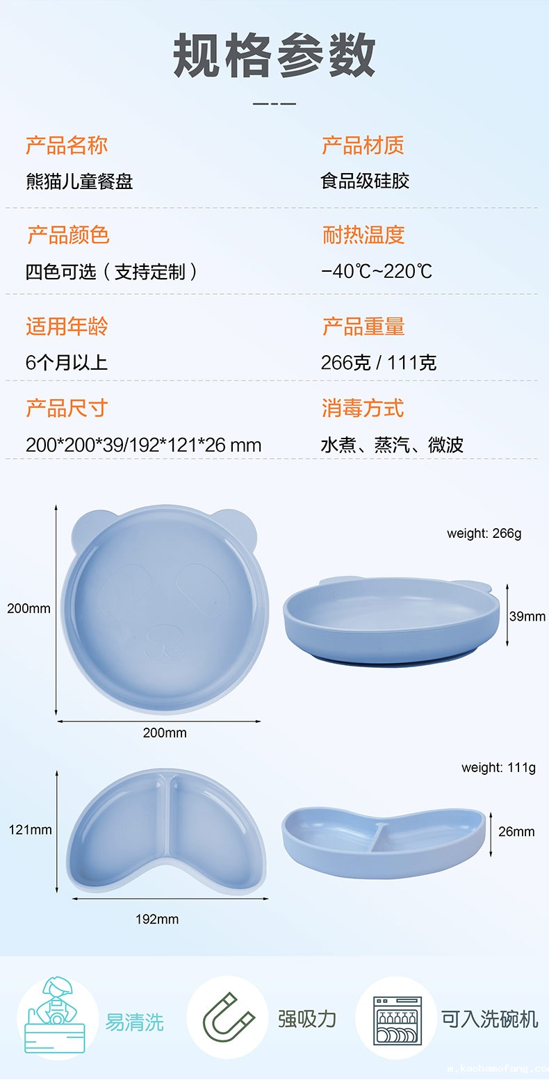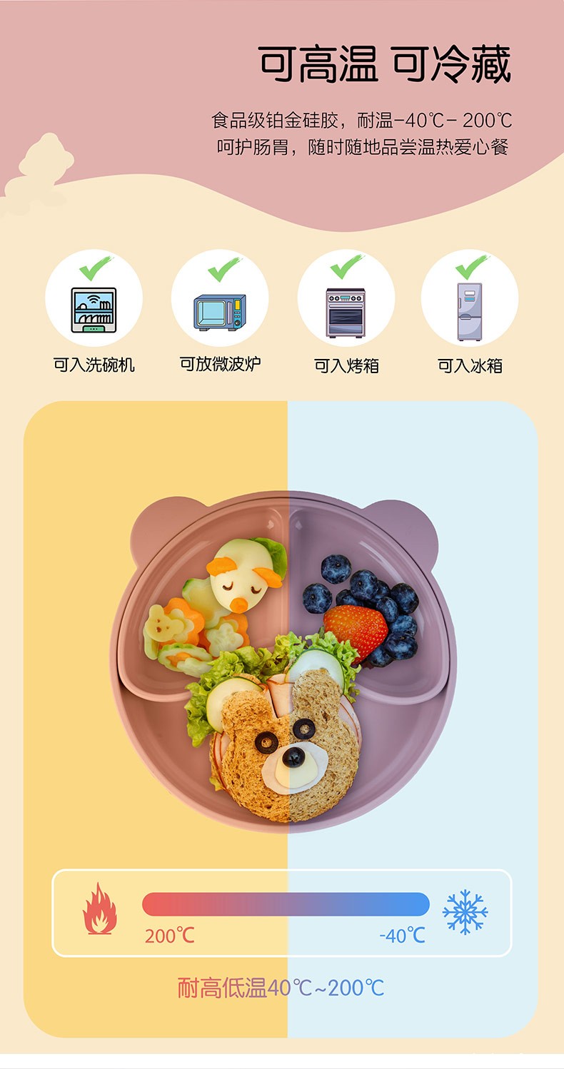 宝宝热销餐盘可拆分食品级硅胶分隔盘辅食吸盘三格儿童硅胶餐盘