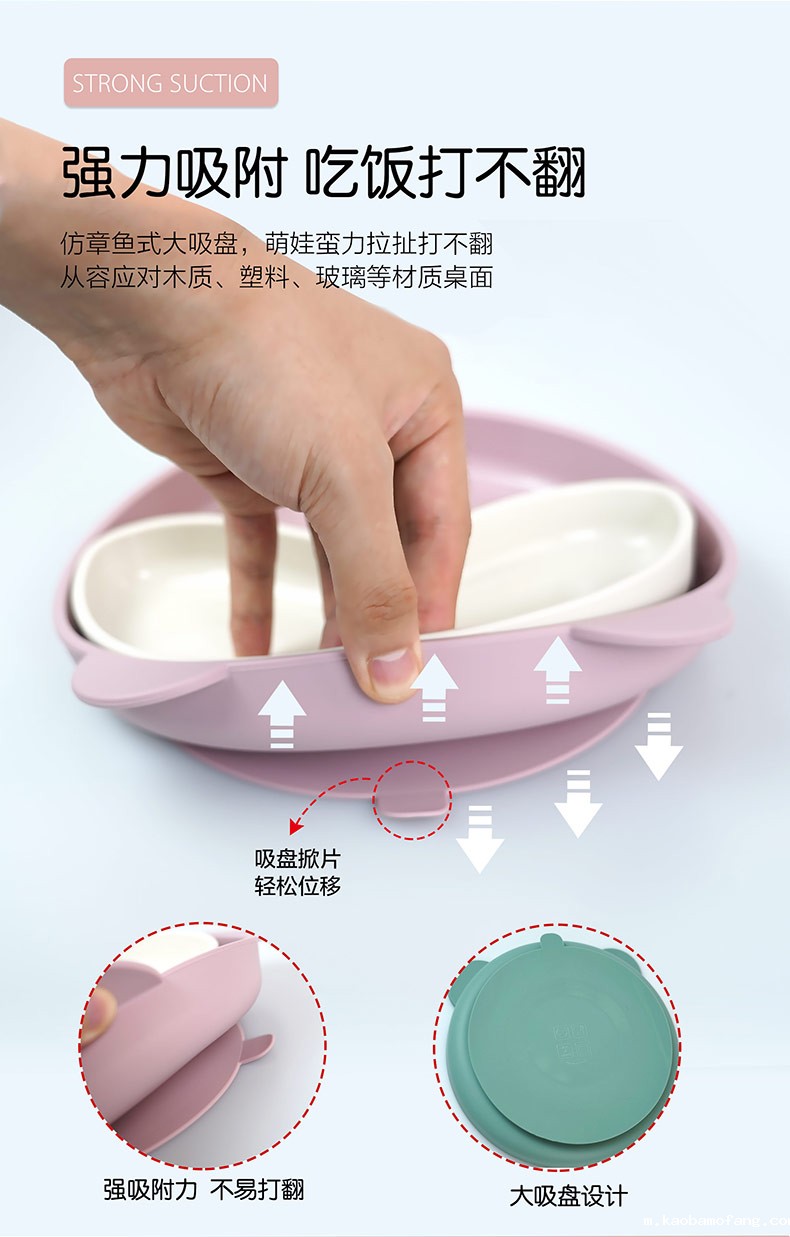 婴儿吸盘式硅胶分格碗卡通学吃饭训餐具