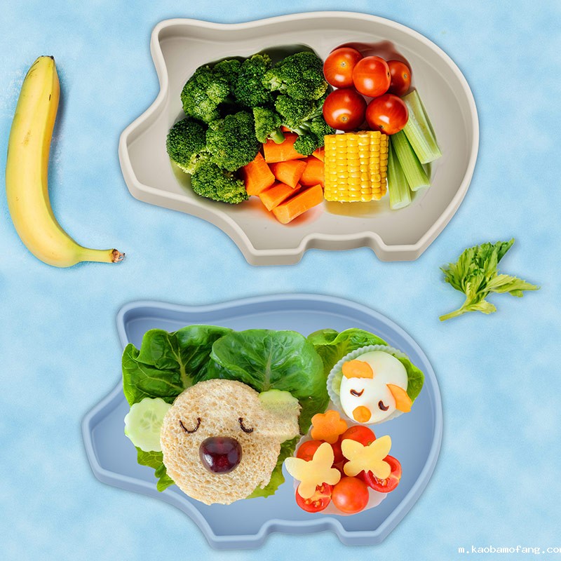可爱小猪儿童餐盘吸盘一体式碗防摔宝宝硅胶餐具卡通硅胶餐盘