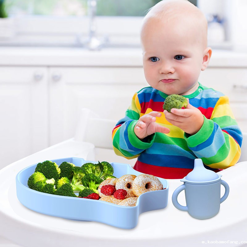 跨境小猫咪儿童硅胶餐具吸盘一体式碗装宝宝硅胶餐具卡通硅胶餐盘
