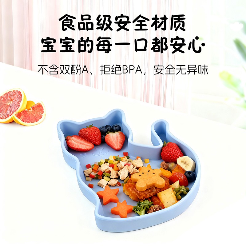 可爱小猪儿童餐盘吸盘一体式碗防摔宝宝硅胶餐具卡通硅胶餐盘