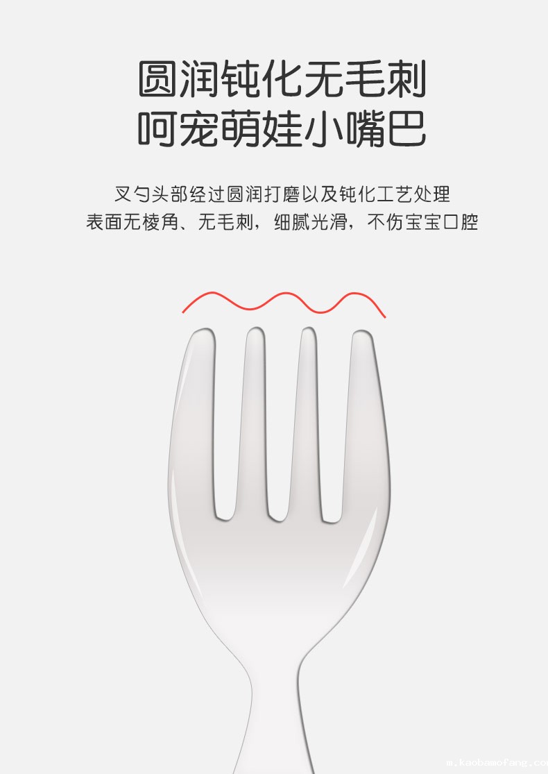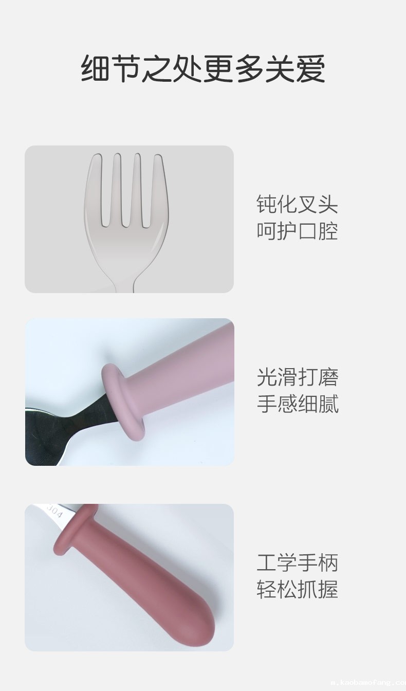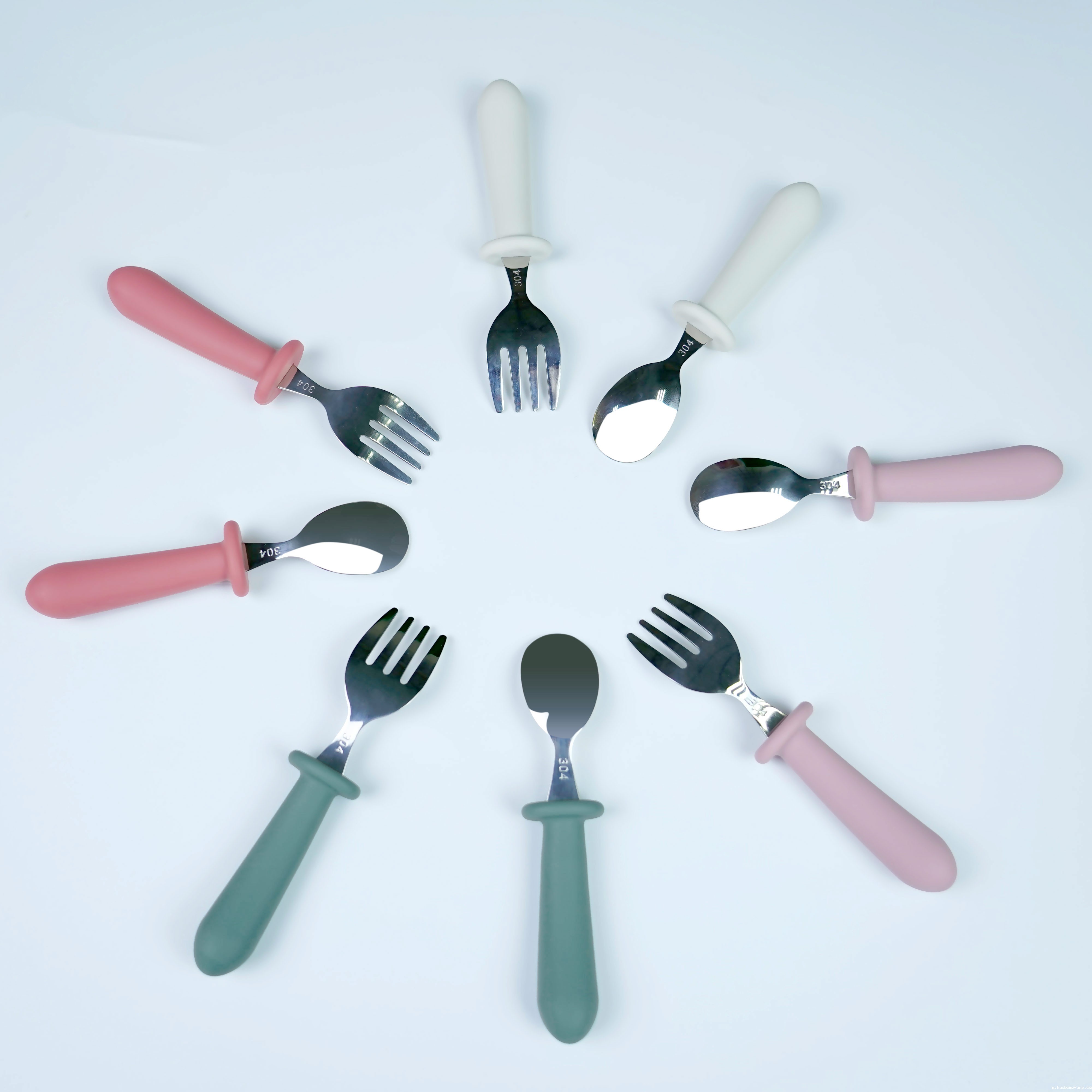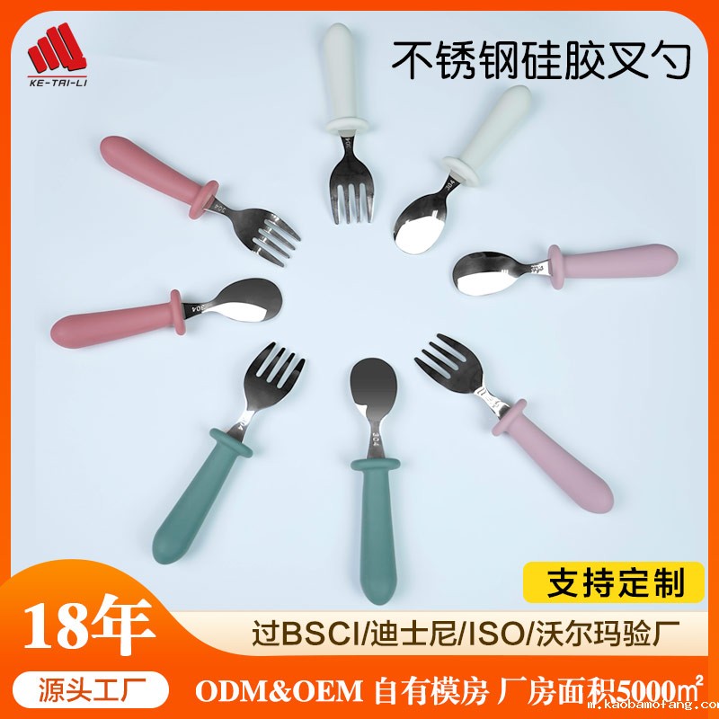 儿童不锈钢餐勺 硅胶手柄宝宝吃饭短柄叉勺 宝宝叉勺套装餐具