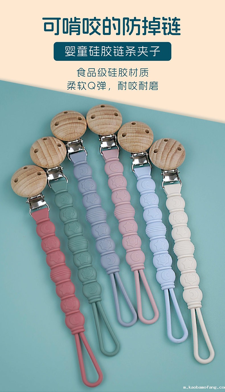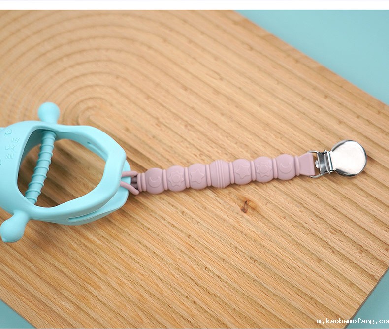跨境安抚宝宝牙胶 防掉链硅胶奶嘴链 婴儿食品级可水煮防掉链牙胶