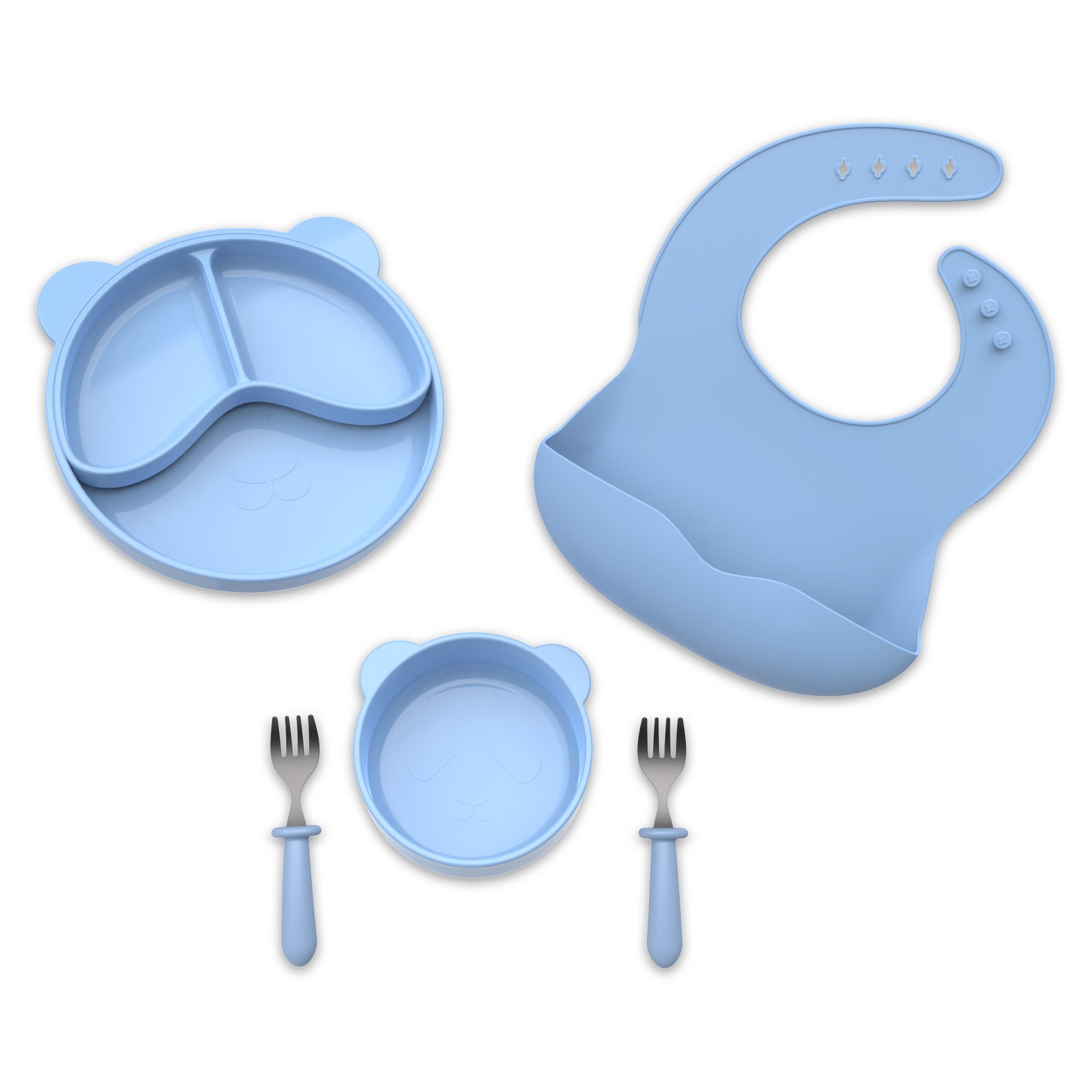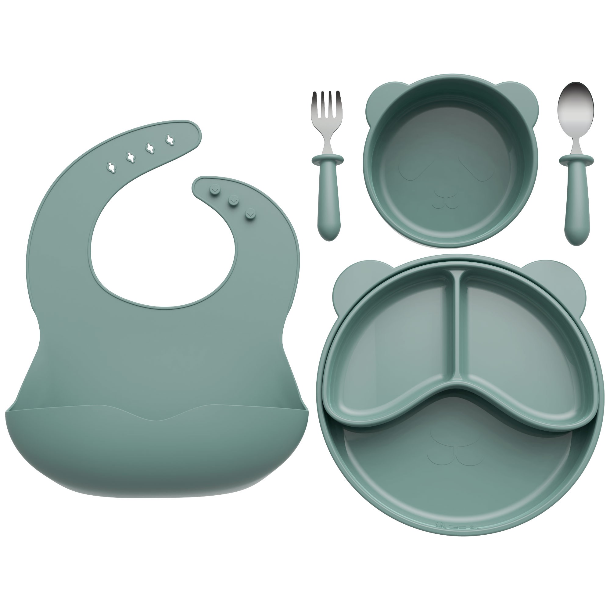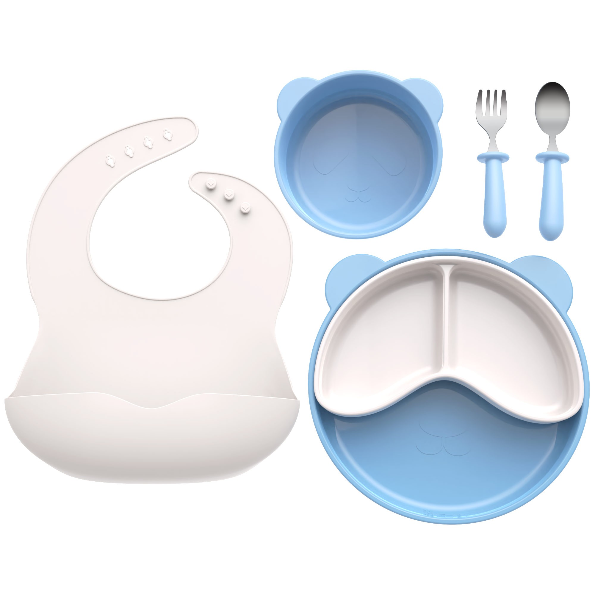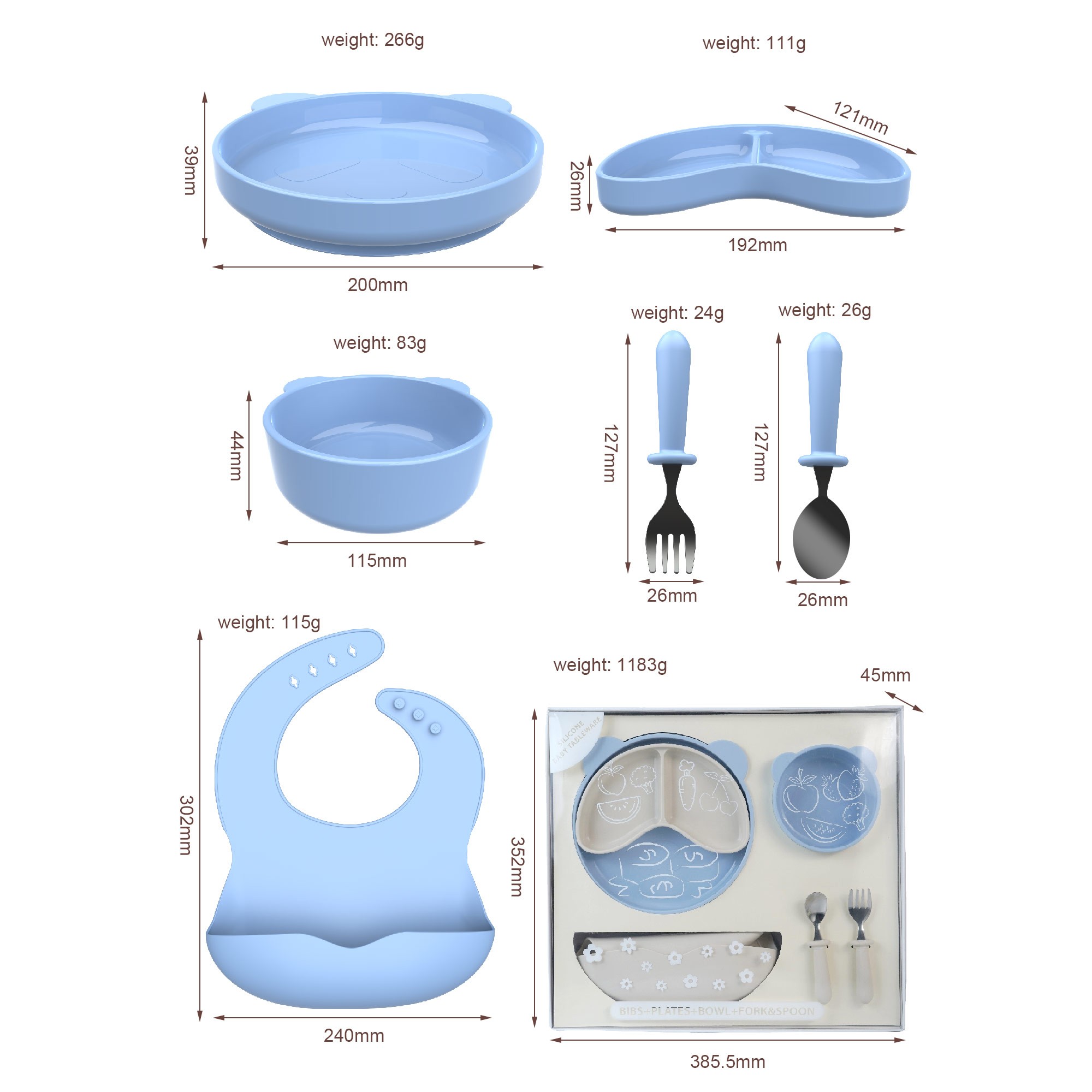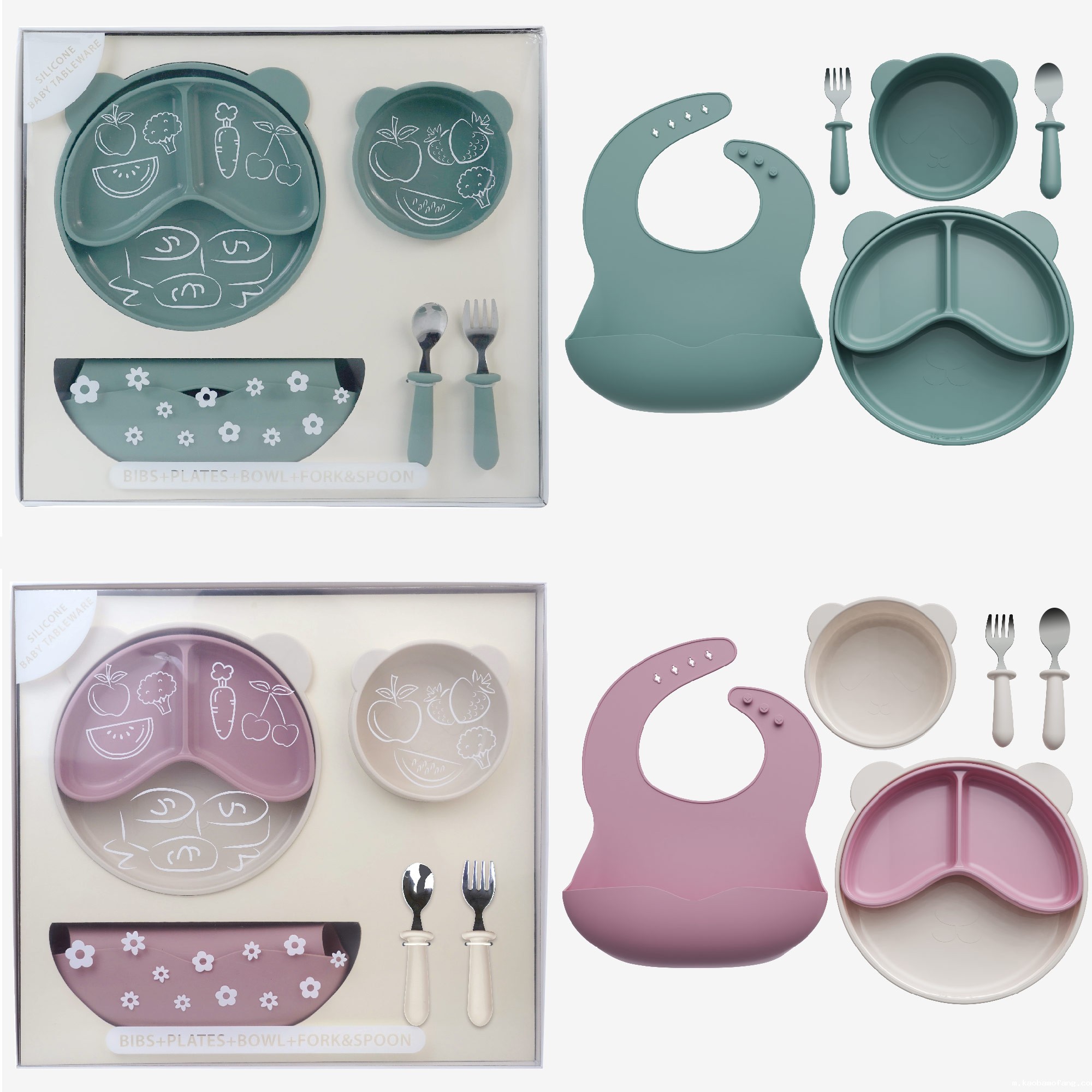 6件套分隔盘母婴喂食套装母婴分格婴儿硅胶餐盘
