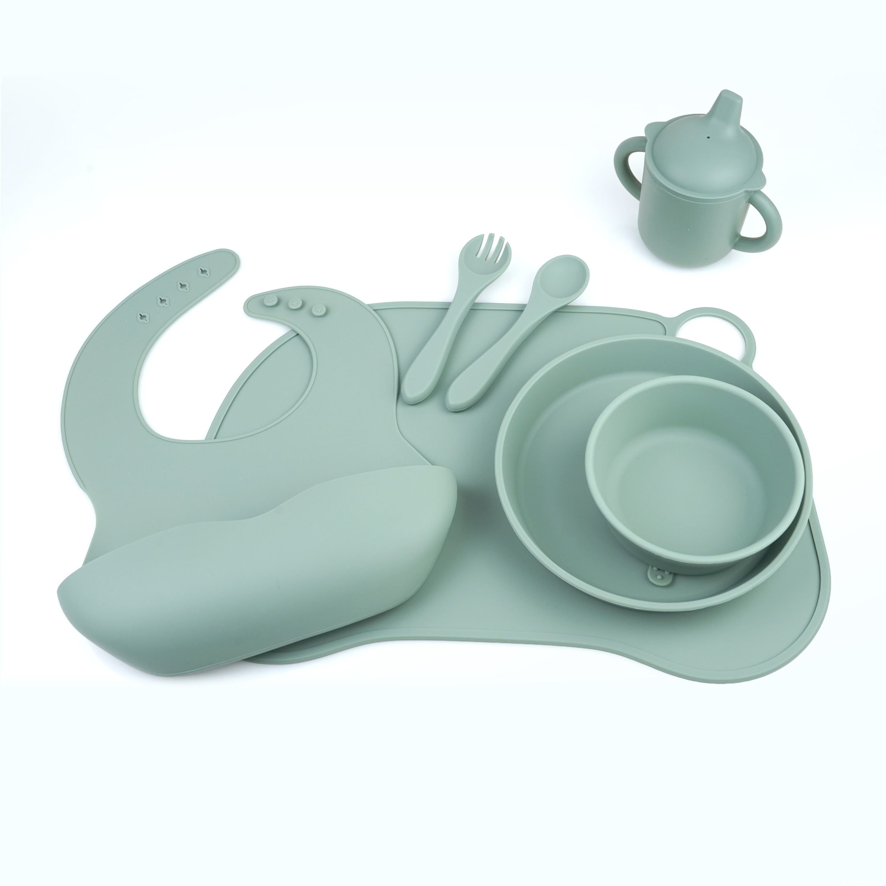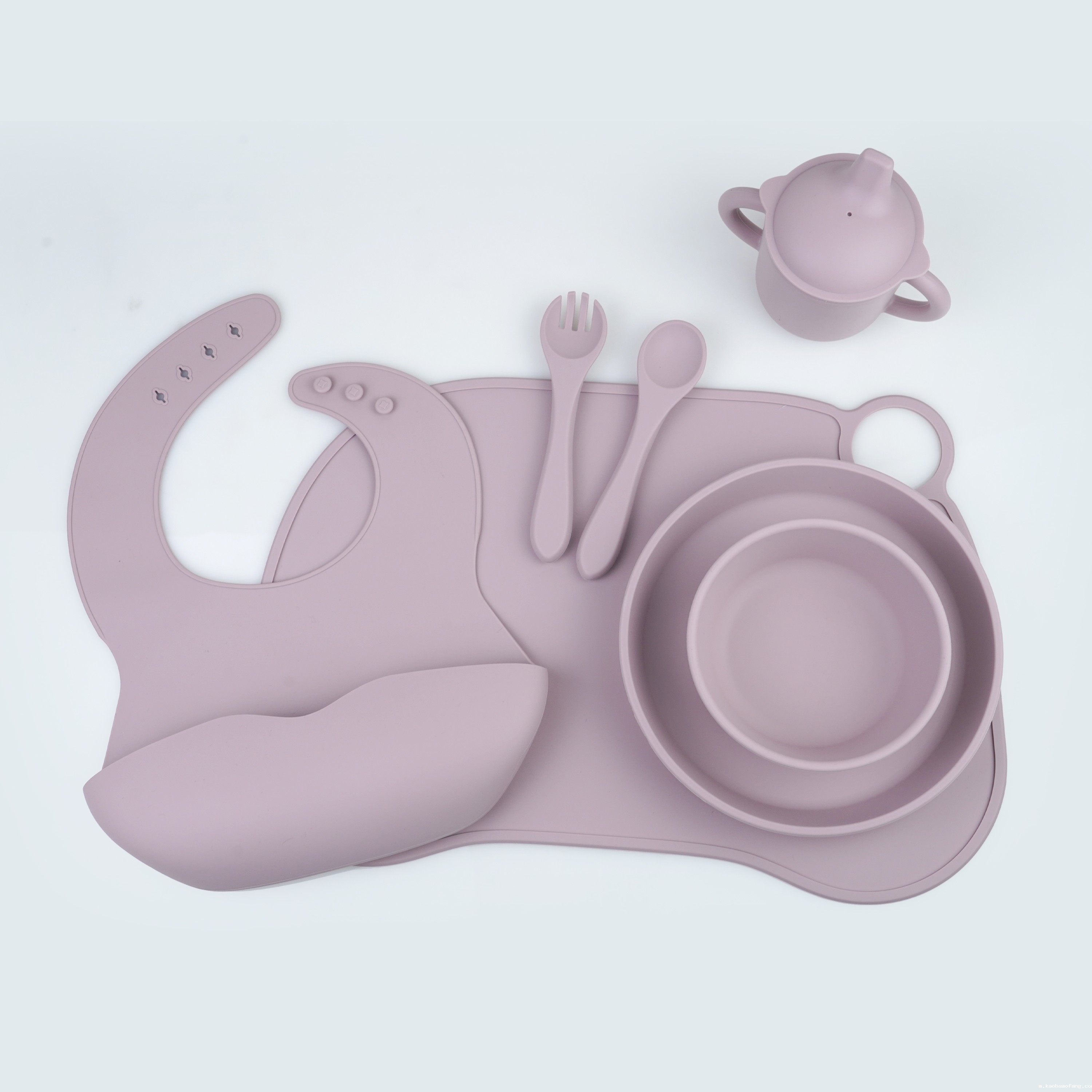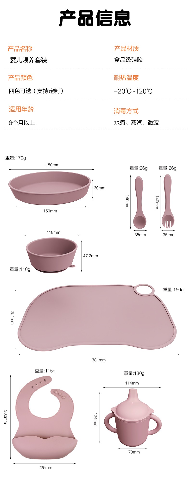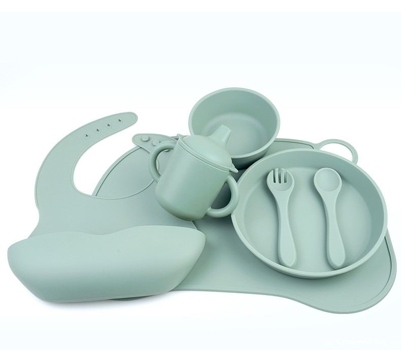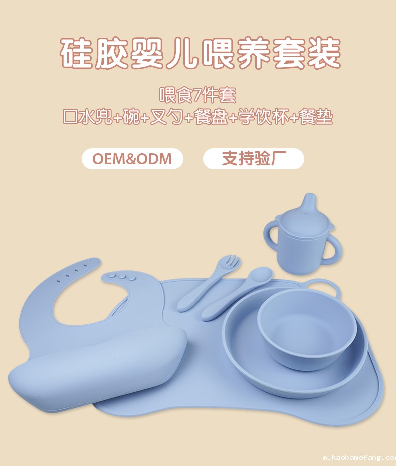 口水兜+碗+叉勺+餐盘+学饮杯+餐垫