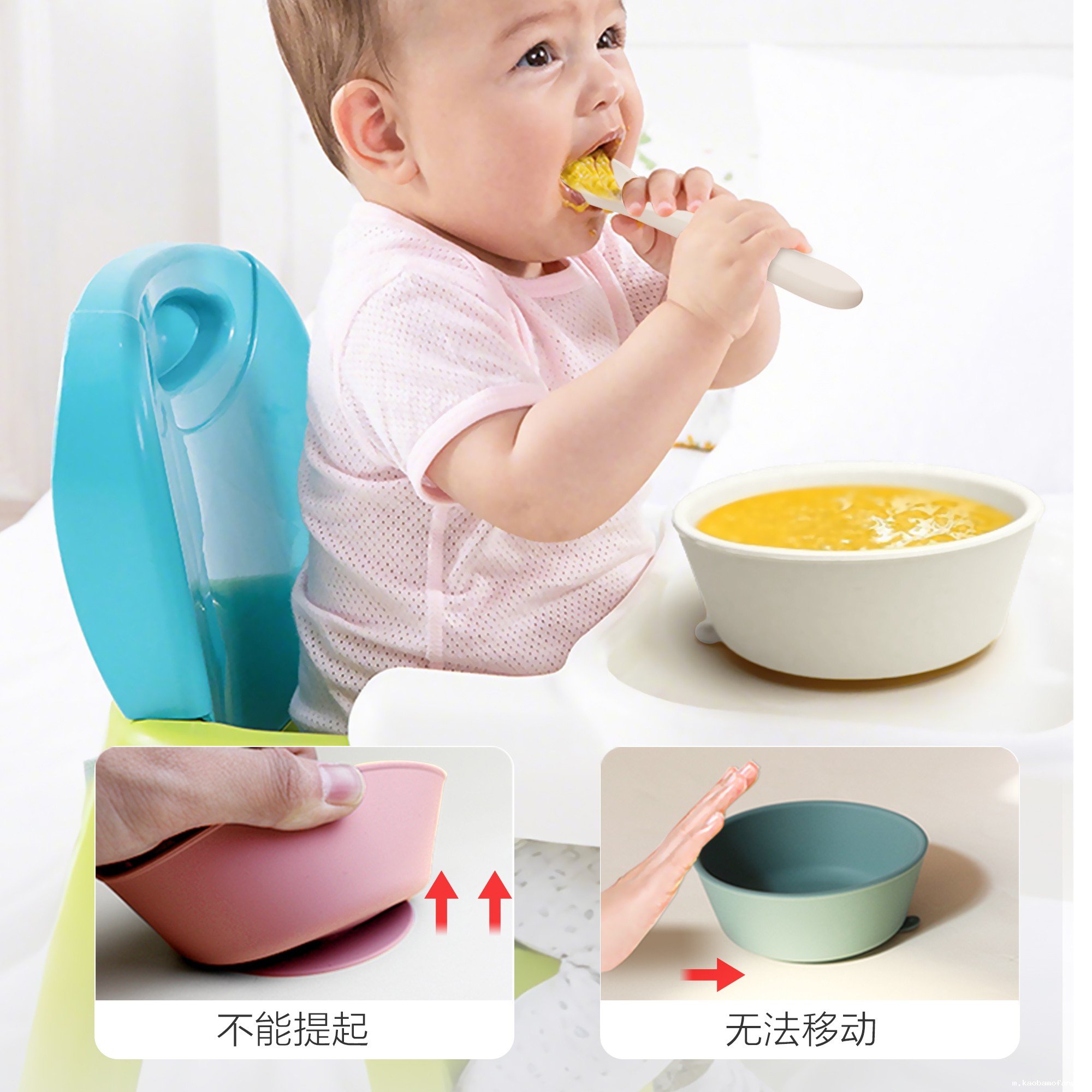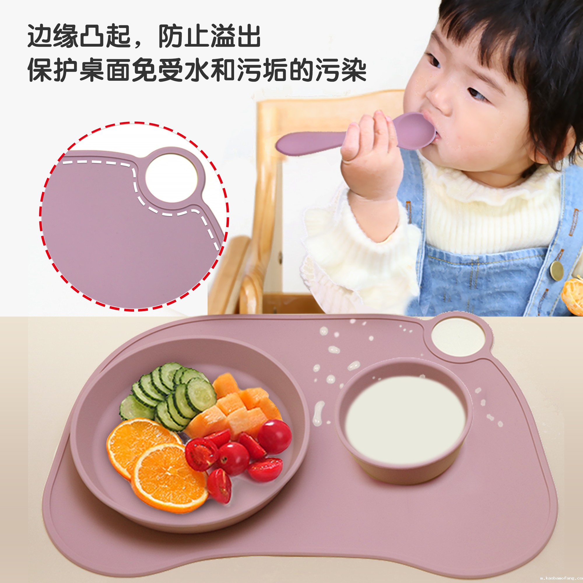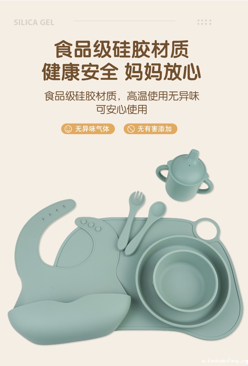 6件套分隔盘母婴喂食套装母婴分格婴儿硅胶餐盘