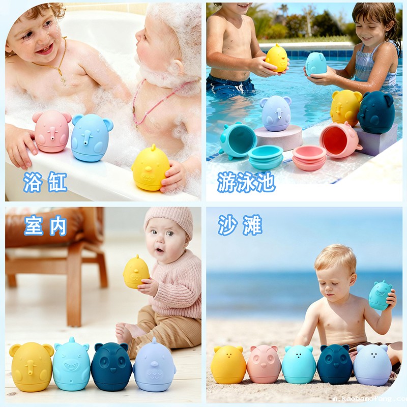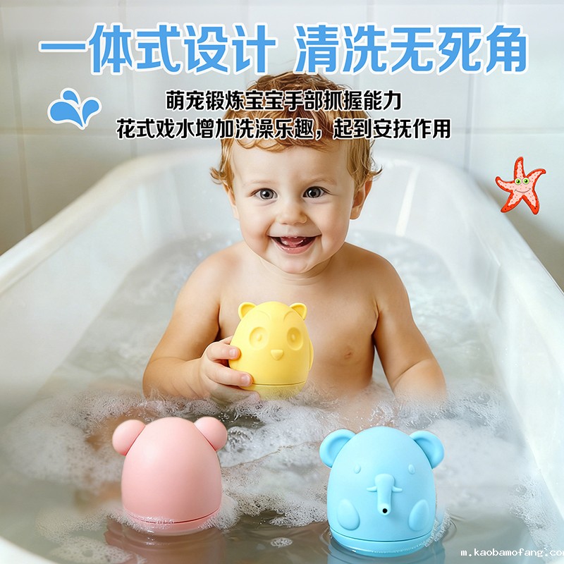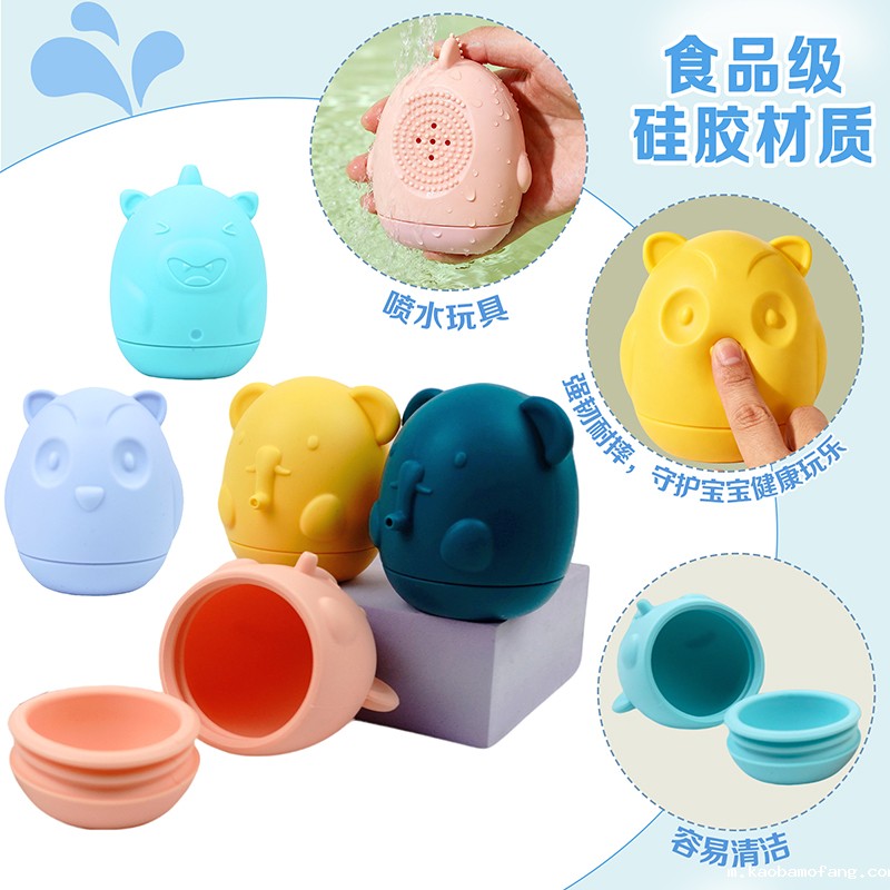 食品级硅胶挤水玩具硅胶婴儿沐浴喷水儿童洗澡益智宝宝戏水4件套