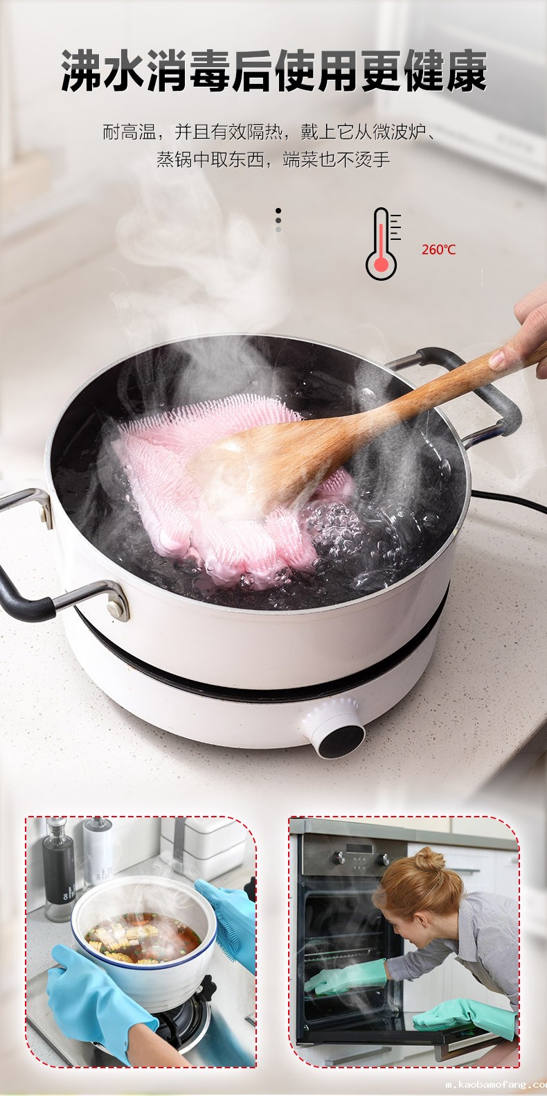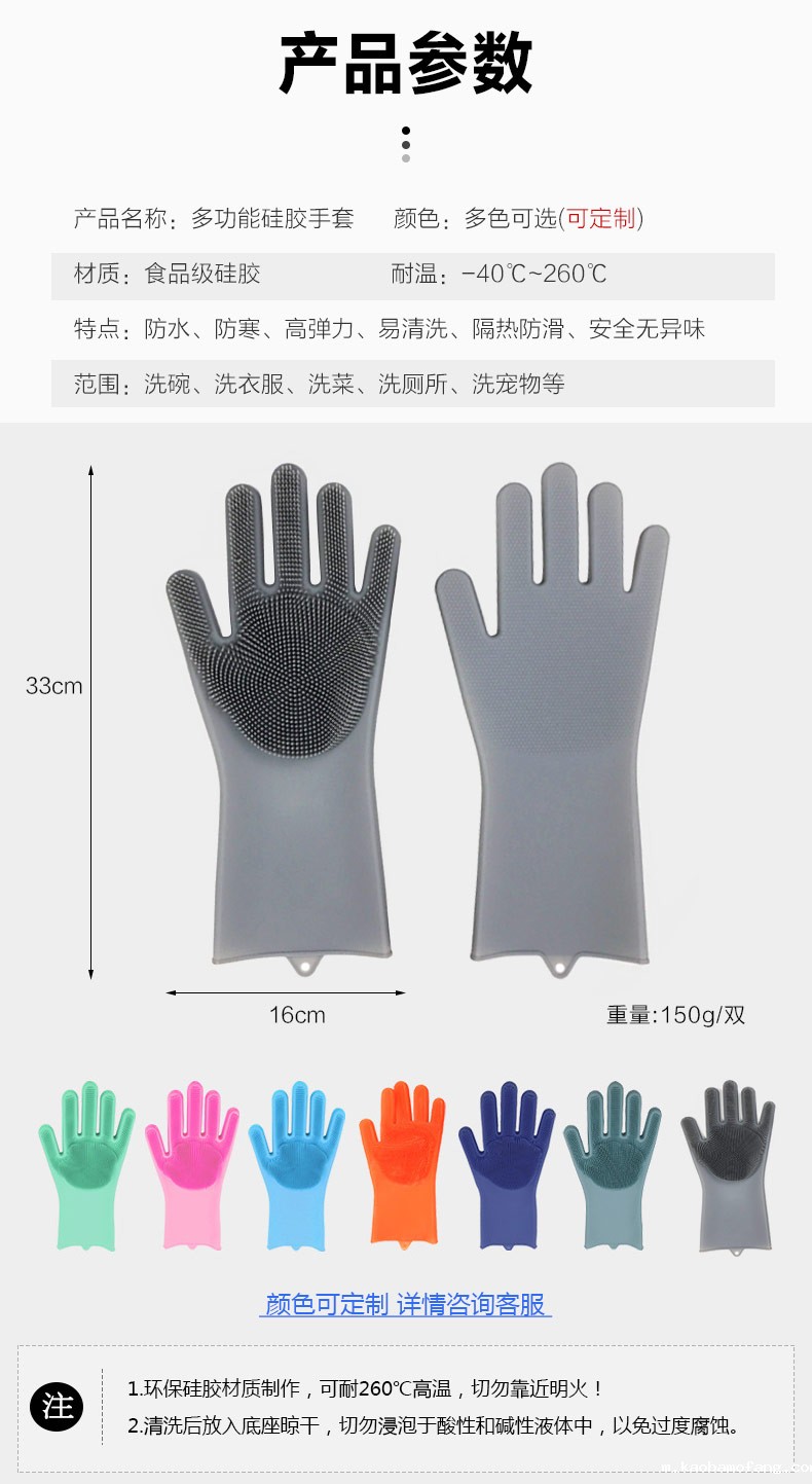 家务清洁硅胶手套 洗碗防滑手套 防水橡胶乳胶耐用