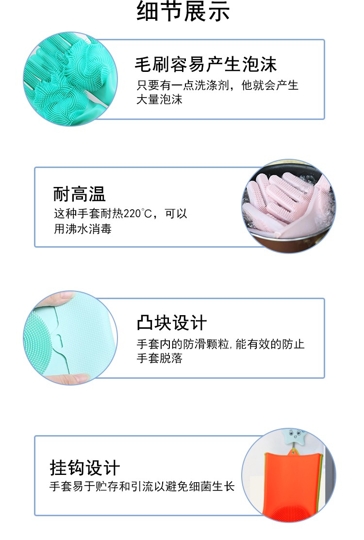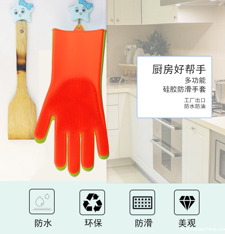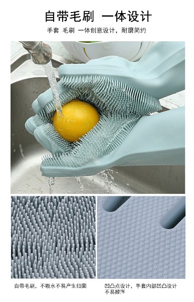 硅胶清洁手套是近年来比较火热的厨房清洁用品。采用柔软硅胶健康材质,手套正面有多重清洁刷头,耐磨耐热,强力去除污渍。