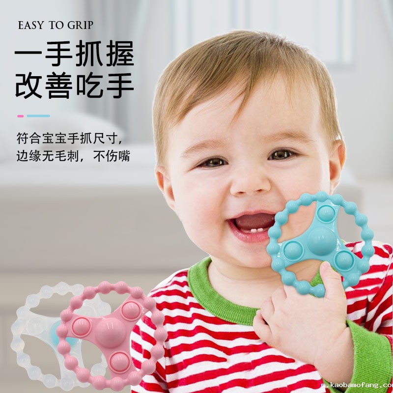 亚马逊新生婴儿硅胶牙胶防吃手圆环食品级可握咬玩具手环母婴牙胶