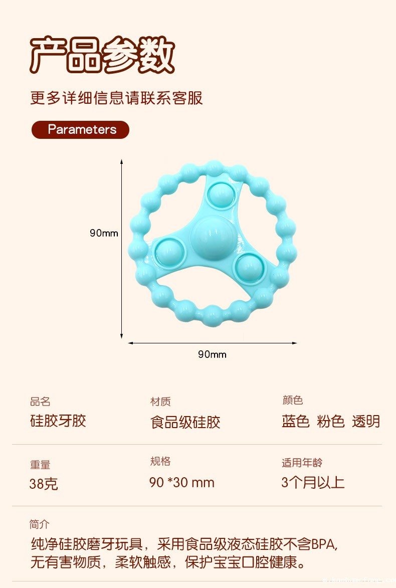简介:纯净硅胶磨牙玩具,采用食品级液态硅胶不含BPA,