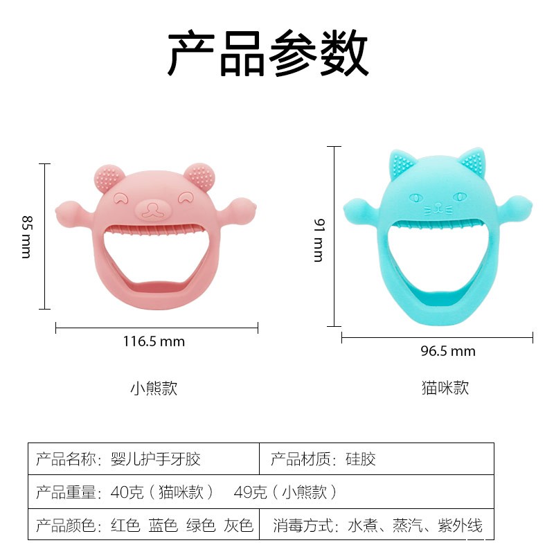 宝宝磨牙棒 婴儿手套硅胶牙胶 护手婴幼儿小熊婴儿牙胶