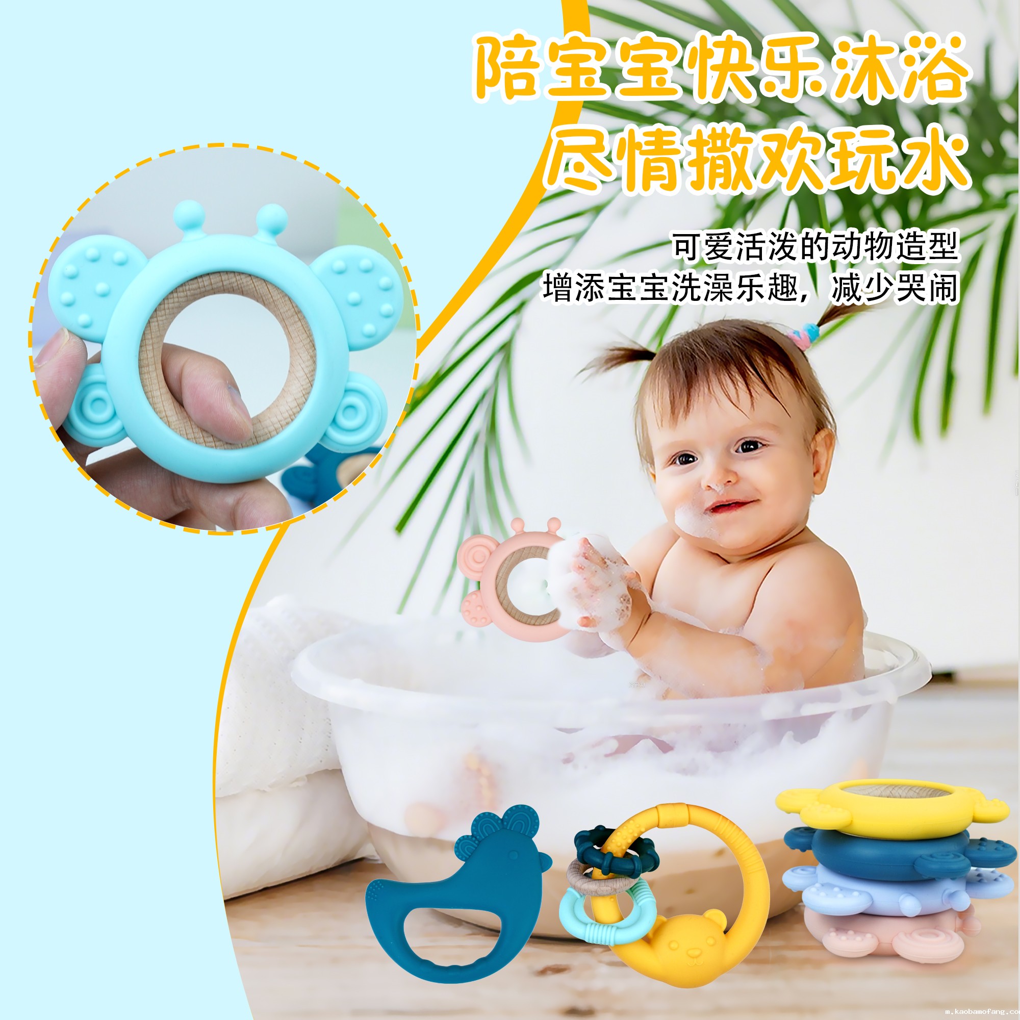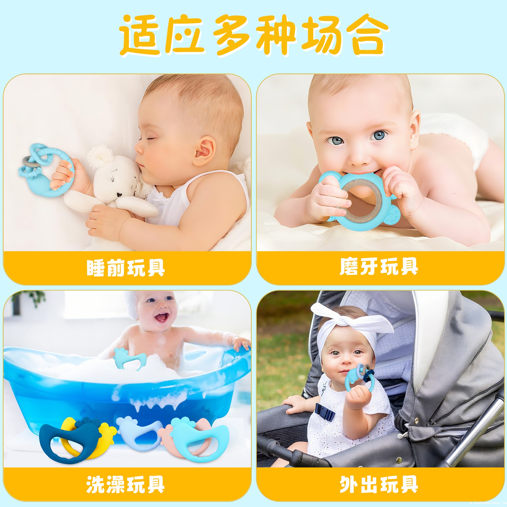 亚马逊新生婴儿硅胶牙胶防吃手圆环食品级可握咬玩具手环母婴牙胶