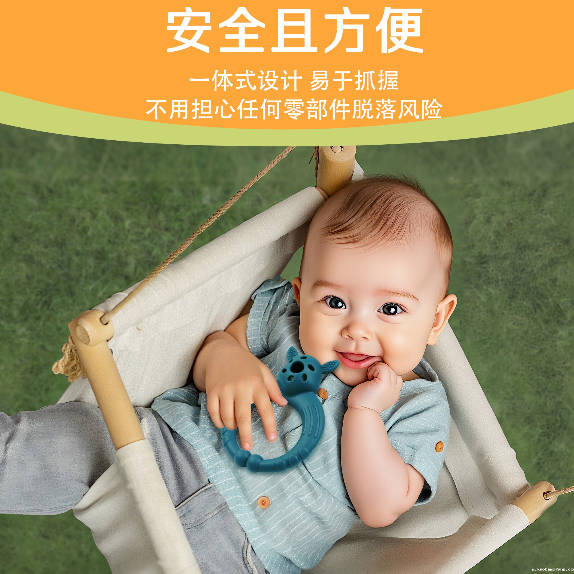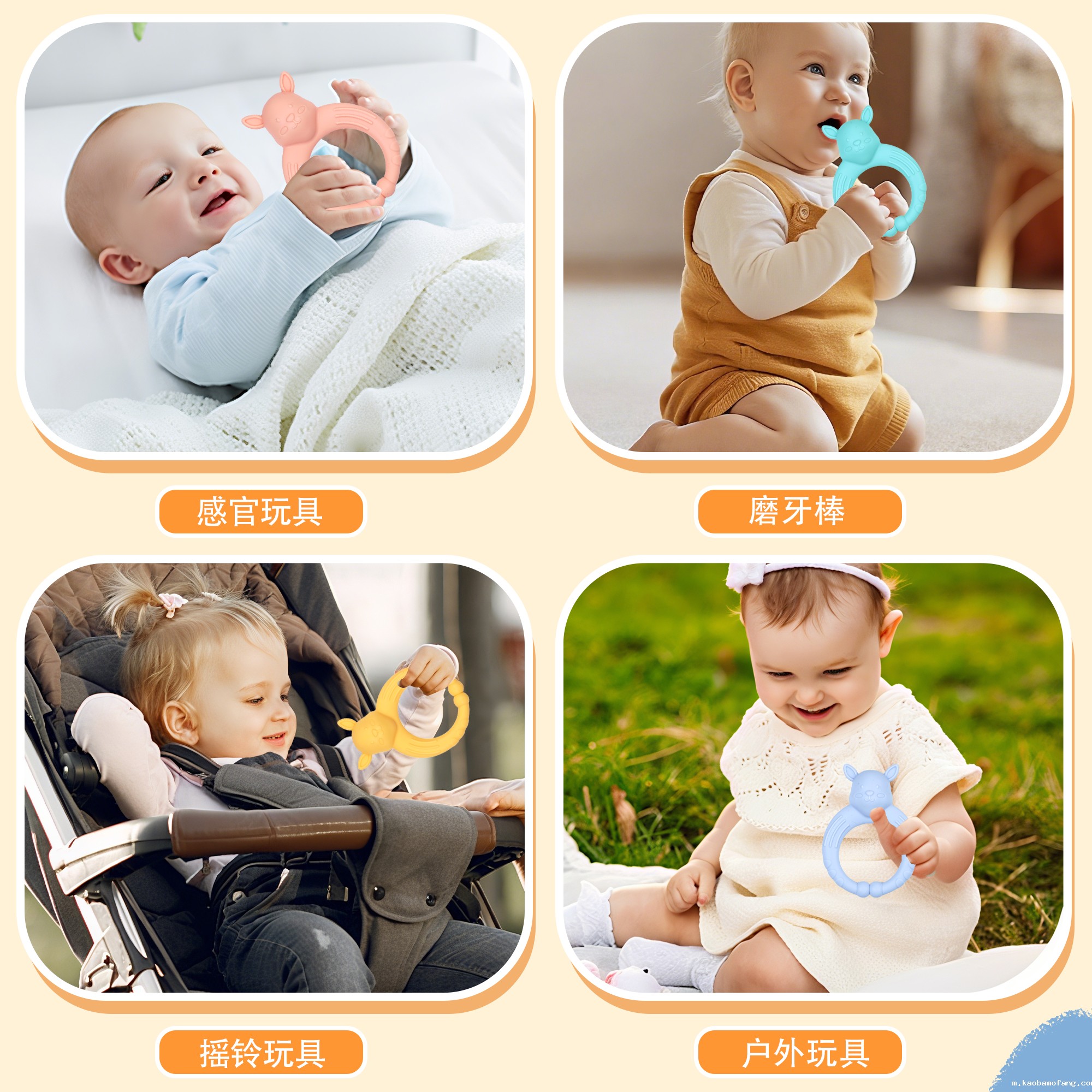 亚马逊新生婴儿硅胶牙胶防吃手圆环食品级可握咬玩具手环母婴牙胶
